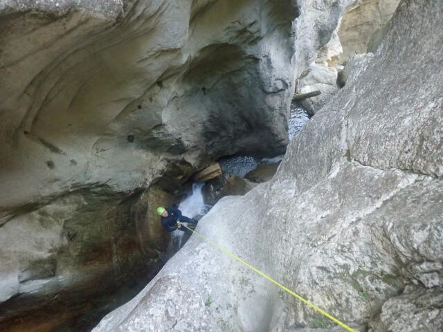 On enchaîne les parties supérieure et inférieure du canyon : en plus d'être à l'aise sur corde dans les grandes verticales, il faudra être rapide et endurant pour enchaîner les nombreux obstacles de la partie intermédiaire ! Une navette de voiture est nécessaire.