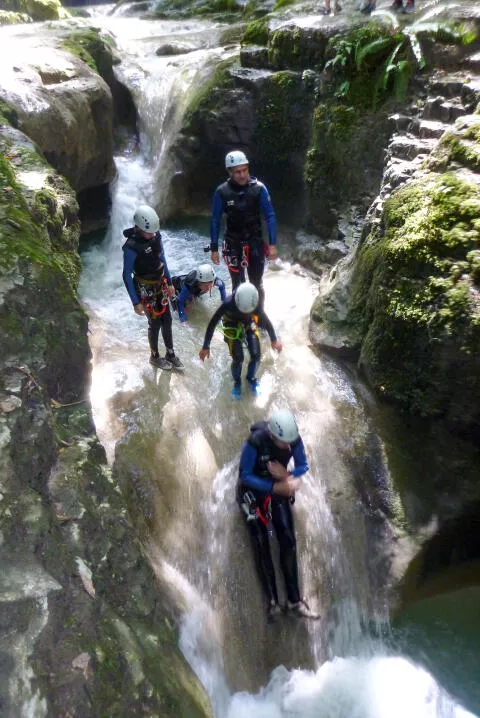 We can do this course without a car shuttle: the access walk is then 45 minutes long, which we will interrupt when crossing the torrent to do an introduction to jumping and enjoy the coolness ! This allows you to tackle obstacles with more serenity and pleasure! We will charge a full day then - contact us.