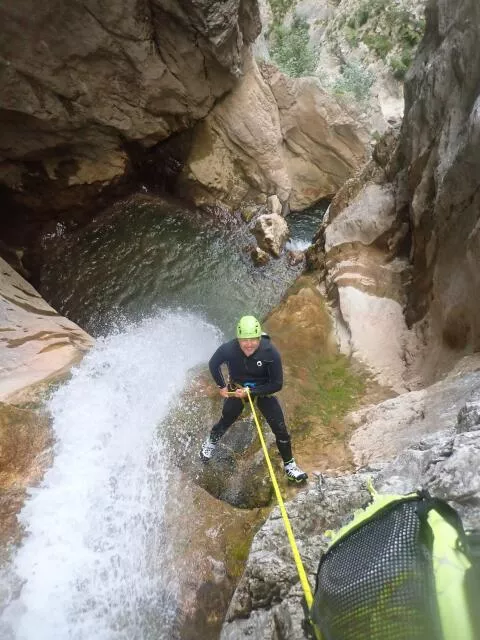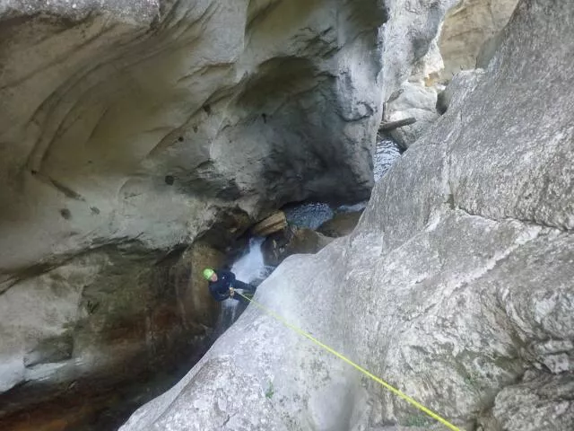We go all the way through the upper and lower parts of the canyon: in addition to being comfortable on a rope in the long verticals, you will need to be fast and resistant to complete the many obstacles in the intermediate part! A car shuttle is required.