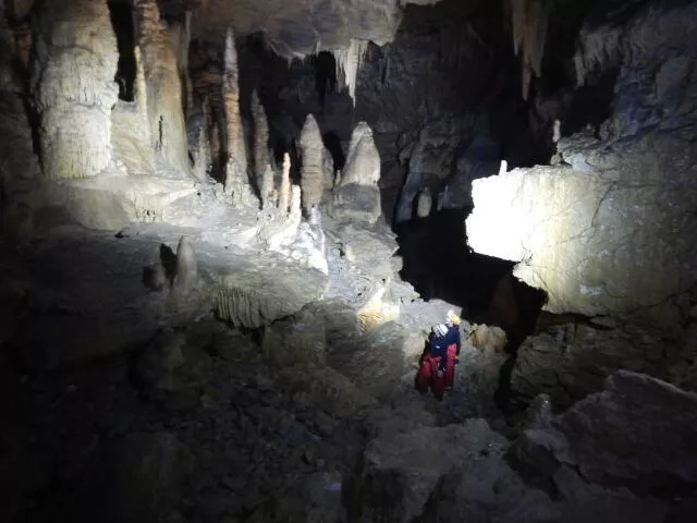 Il s'agit d'une traversée qui permet de suivre le cours d'eau, en parcourant de beaux volumes. De nombreuses traces du travail de l'eau et formes en marmites ponctuent la balade, et quelques animaux souterrains nous feront peut-être l'honneur de leur présence... C'est une sortie enfants, mais...