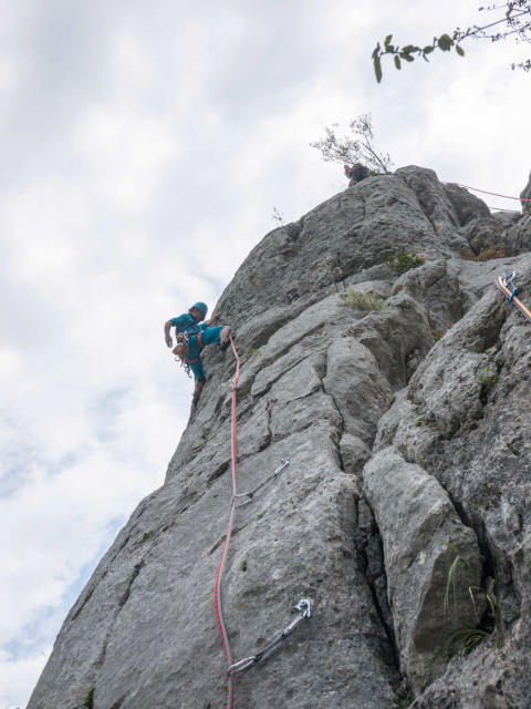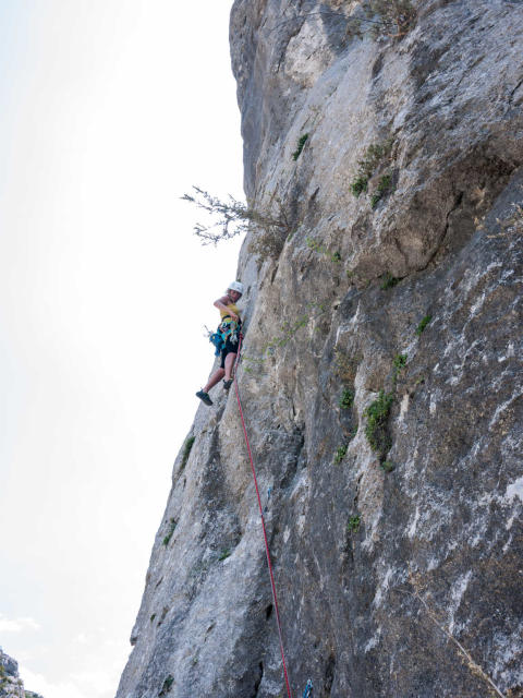 Au programme : apprendre à confectionner un relais, utiliser une corde à double pour monter et descendre (rappel auto-assuré) et choisir son matériel. Les falaises des premières demi-journées seront des falaises "écoles" dont certaines (Col du Coq, Ecoutoux...) permettent la mise en situation sur des petits parcours de 2 longueurs. La journée complète se déroulera sur des itinéraires plus longs en Vercors, Chartreuse ou Taillefer, selon le niveau du groupe et les conditions météo du moment.