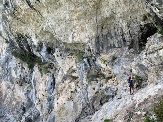Après une courte approche en forêt permettant de se mettre en jambe, on débouche en plein milieu de la falaise ou l'encordement devient indispensable. On découvre, alors, une vue incroyable sur la vallée de Grenoble ainsi que la chaine de Belledonne. Cette première partie horizontale nous amène vers la jolie petite cabane du Chabloz (non mentionnée sur les cartes). Après la pause obligatoire vers cette cabane, plusieurs possibilités selon le niveau des participants :