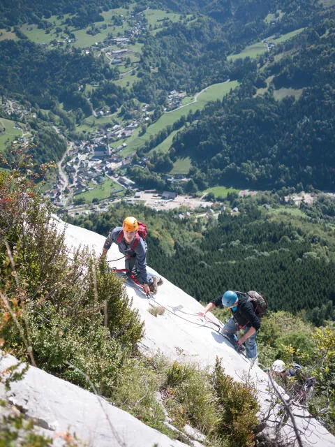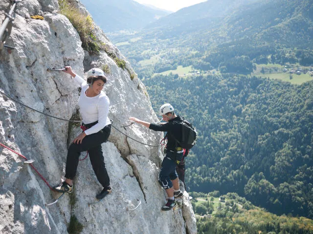 Les Bauges, vert massif bucolique entre Savoie et Haute Savoie, au centre du triangle Chambéry - Annecy - Albertville offre une grande variété d'activités de pleine nature. Un cadre ressourçant dans lequel il est toujours bon de s'immerger. Les deux via-ferratas proposées ici vous offriront un point de vue aérien et agrémenté de la rafraîchissante cascade de la Doria depuis une grande falaise de calcaire gris comme support de notre voyage vertical!