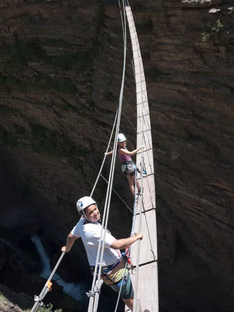 Une via-ferrata facile à faire en famille ! Idéale avec des enfants Elle serpente autour du torrent qui nous apporte, par la même occasion, sa fraîcheur apréciable l'été. Plusieurs sorties sont possibles en fonction du groupe. Poutres, ponts de singe, ponts népalais, toujours aisés à...