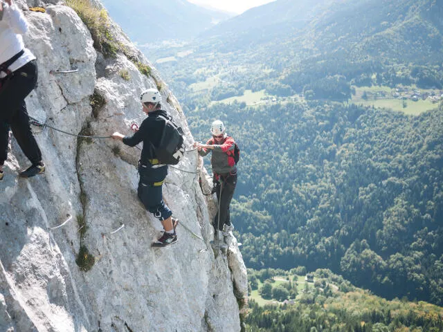 Après une assez longue et raide marche pour accéder au départ (environ une heure), vous trouverez un parcours idéal pour découvrir l'activité de façon progressive, en profitant de poses pour admirer la vue exceptionnelle sur la vallée de Entremonts sur un superbe calcaire gris travaillé par l'érosion des millénaires ! Quelques courts passages raides, mais de nombreuses zones de repos vous permettront de profiter du spectacle en toute sérénité. Un plaisir qui se mérite ! A prendre en compte : la descente est un sentier raide au début. Il est donc préférable d'être à l'aise sur ce type de terrain estamplillé "montagne".