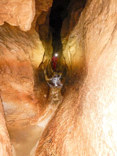 Sur l'extraordinaire plateau de la Feclaz-Revard, la grotte de la cavale dissimule l'une des plus belles rivières des Bauges. Ce parcours très varié permet de découvrir la descente et montée sur corde. La suite sera une longue aventure pour suivre le ruisseau souterrain et son méandre très concrétionné.