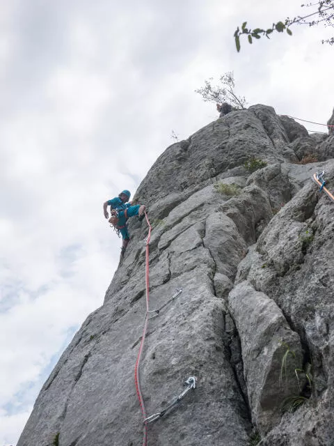 Au programme : apprendre à confectionner un relais, utiliser une corde à double pour monter et descendre (rappel auto-assuré) et choisir son matériel. Les falaises des premières demi-journées seront des falaises "écoles" dont certaines (Col du Coq, Ecoutoux...) permettent la mise en situation sur des petits parcours de 2 longueurs. La journée complète se déroulera sur des itinéraires plus longs en Vercors, Chartreuse ou Taillefer, selon le niveau du groupe et les conditions météo du moment.