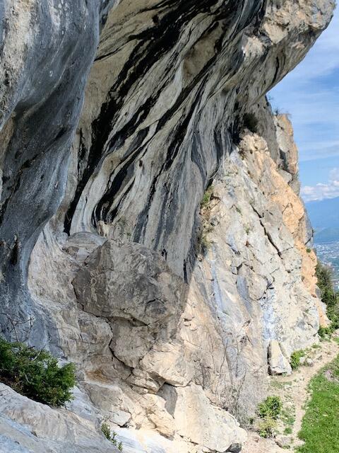 Après une courte approche en forêt permettant de se mettre en jambe, on débouche en plein milieu de la falaise ou l'encordement devient indispensable. On découvre, alors, une vue incroyable sur la vallée de Grenoble ainsi que la chaine de Belledonne. Cette première partie horizontale nous amène vers la jolie petite cabane du Chabloz (non mentionnée sur les cartes). Après la pause obligatoire vers cette cabane, plusieurs possibilités selon le niveau des participants :