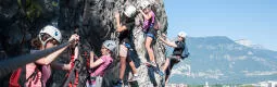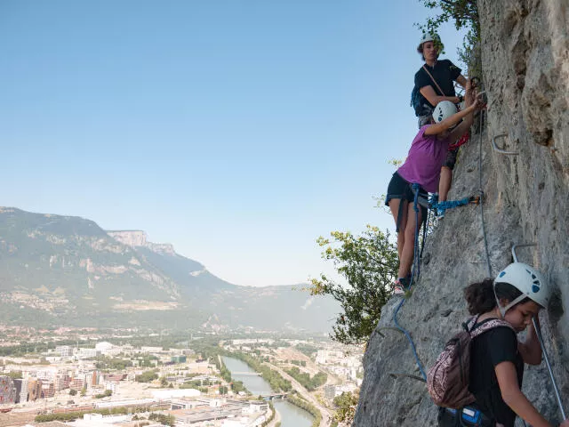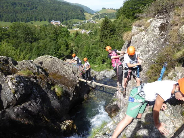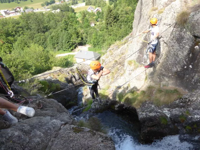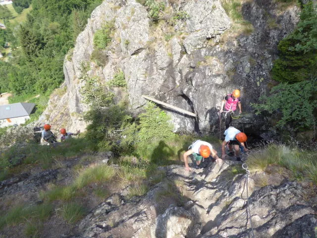 Une via-ferrata facile à faire en famille ! Idéale avec des enfants Elle serpente autour du torrent qui nous apporte, par la même occasion, sa fraîcheur apréciable l'été. Plusieurs sorties sont possibles en fonction du groupe. Poutres, ponts de singe, ponts népalais, toujours aisés à franchir, se succèdent, alors que nous prenons de la hauteur et que le point de vue s'ouvre sur les sommets environnants de ce massif du Taillefer.