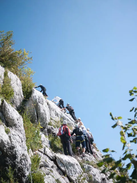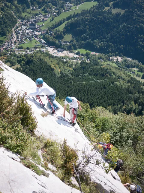 Après une assez longue et raide marche pour accéder au départ (environ une heure), vous trouverez un parcours idéal pour découvrir l'activité de façon progressive, en profitant de poses pour admirer la vue exceptionnelle sur la vallée de Entremonts sur un superbe calcaire gris travaillé par l'érosion des millénaires ! Quelques courts passages raides, mais de nombreuses zones de repos vous permettront de profiter du spectacle en toute sérénité. Un plaisir qui se mérite ! A prendre en compte : la descente est un sentier raide au début. Il est donc préférable d'être à l'aise sur ce type de terrain estamplillé "montagne".