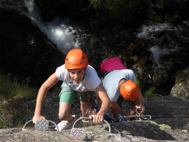 Une via-ferrata facile à faire en famille ! Idéale avec des enfants Elle serpente autour du torrent qui nous apporte, par la même occasion, sa fraîcheur apréciable l'été. Plusieurs sorties sont possibles en fonction du groupe. Poutres, ponts de singe, ponts népalais, toujours aisés à franchir, se succèdent, alors que nous prenons de la hauteur et que le point de vue s'ouvre sur les sommets environnants de ce massif du Taillefer.
